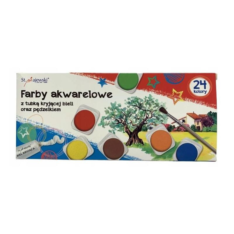 FARBY AKWARELOWE 24 KOLORY + PĘDZELEK 3+