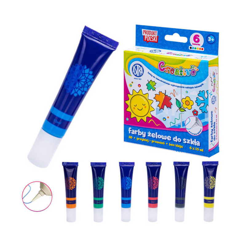 FARBY DO TWORZENIA NAKLEJEK ŻELOWYCH ZESTAW 6 X 15 ML CREATIVO ASTRA Outlet