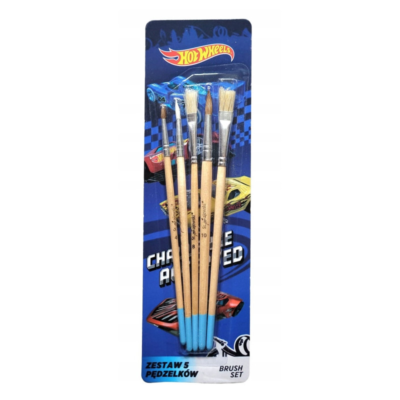 PĘDZELKI SZKOLNE Z NATURALNEGO WŁOSIA 5 SZTUK HOT WHEELS