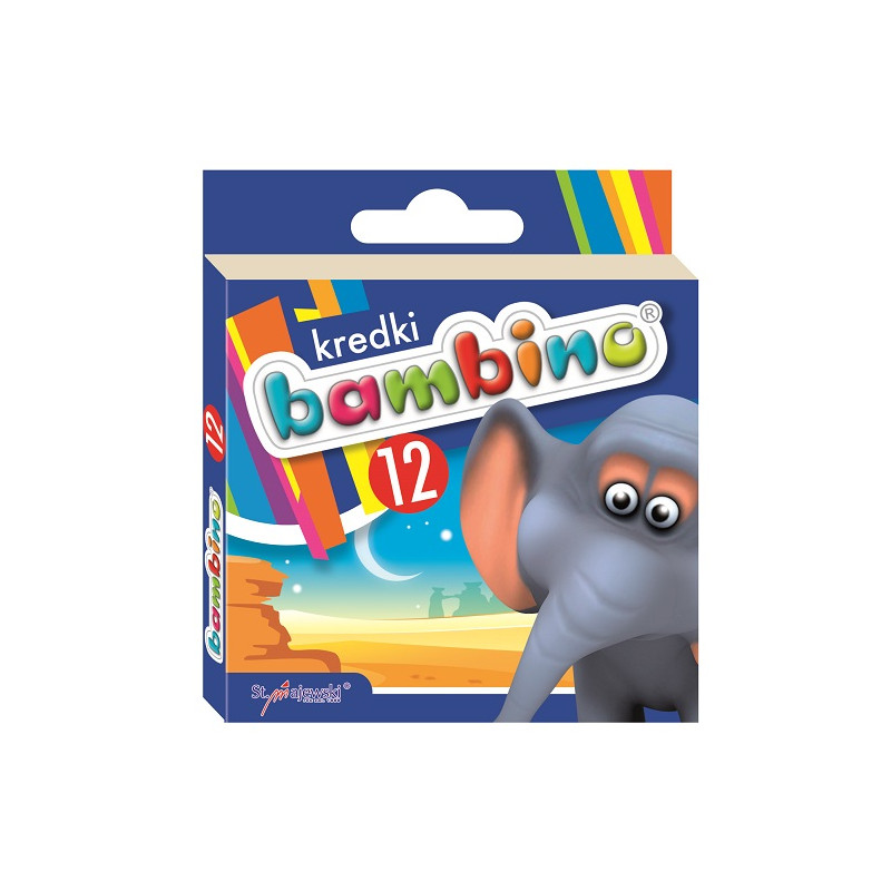 Wysokiej jakości kredki, które towarzyszą dzieciom od pokoleń. Wyróżniają je wyjątkowo intensywne i nasycone kolory oraz doskonale krycie powierzchni. Idealnie nadają się do rysowania, wypełniania dużych płaszczyzn i wykonywania miękkich przejść pomiędzy kolorami. Kredki Bambino wykonane są z glinki kaolinowej, co nieporównywalnie podnosi ich walory użytkowe względem kredek świecowych, woskowych czy ołówkowych. Każda kredka posiada papierową ochronną owijkę z własną grafiką (na każdej kredce inne zwierzątko). Kredki Bambino są bezpieczne dla dzieci, ich produkcja odbywa się w Polsce, w zgodności z dyrektywą Parlamentu Europejskiego i Rady w sprawie bezpieczeństwa zabawek oraz rozporządzeniem Ministerstwa Gospodarki w sprawie zasadniczych wymagań dla zabawek.