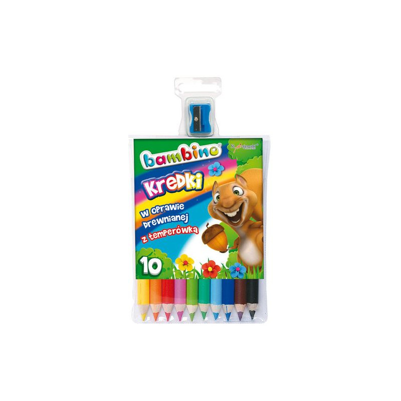 Kredki BAMBINO w oprawie drewnianej z temperówką, 10 kolorów.
