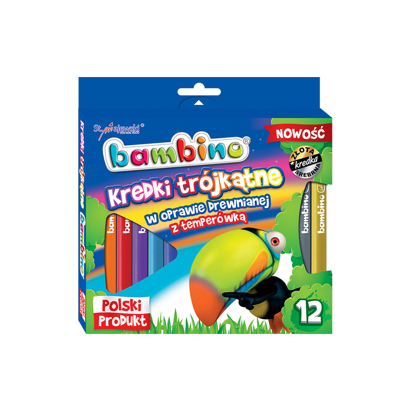 KREDKI OŁÓWKOWE TRÓJKĄTNE BAMBINO 12 KOLORÓW Z TEMPERÓWKĄ