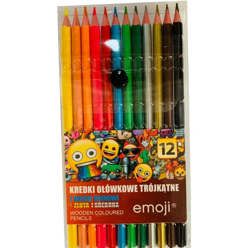 KREDKI OŁÓWKOWE TRÓJKĄTNE EMOJI 12 KOLORÓW