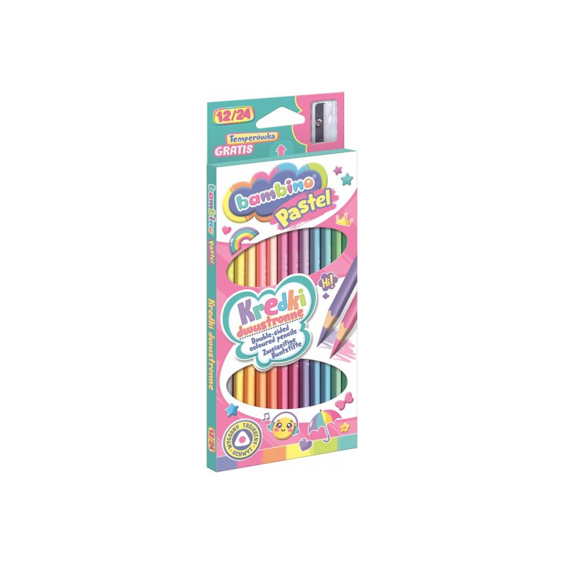KREDKI SZKOLNE TRÓJKĄTNE DWUSTRONNE BAMBINO PASTEL 12/24 KOLORÓW DŁ. 18 CM