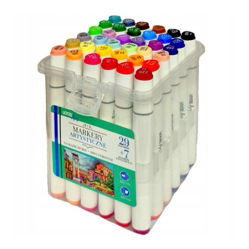 Dwustronne markery artystyczne wodne – 36 szt. 7 kolorów pastelowych Loozz Art St.Majewski