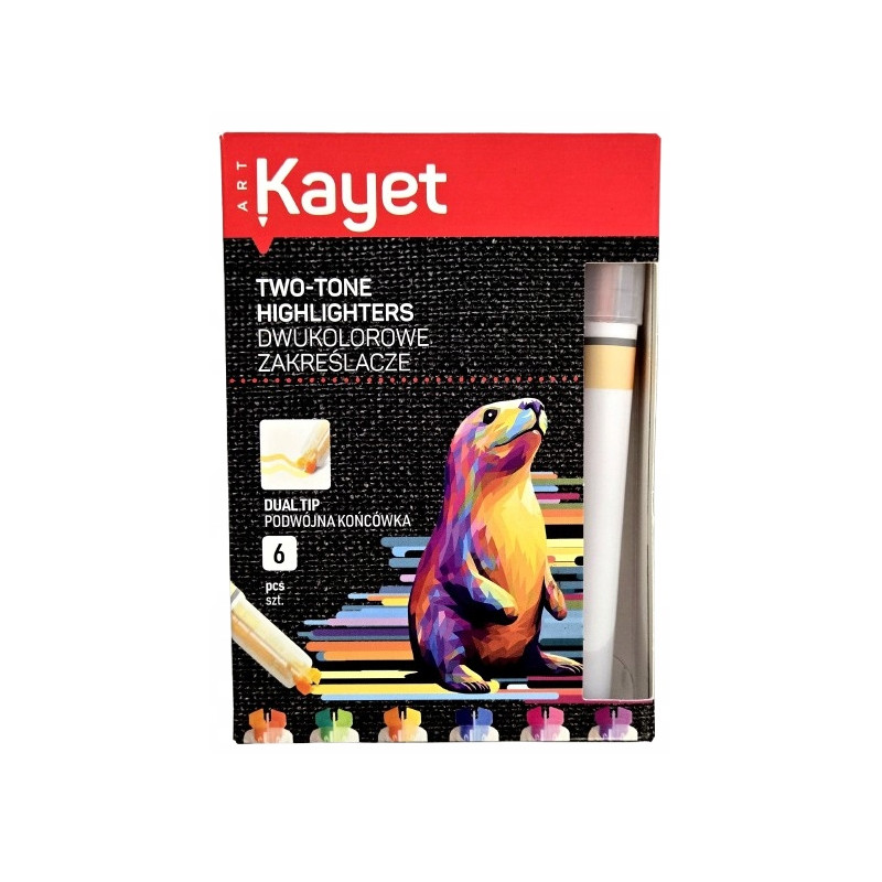 KAYET Dwukolorowe zakreślacze podwójna końcówka 6 sztuk
