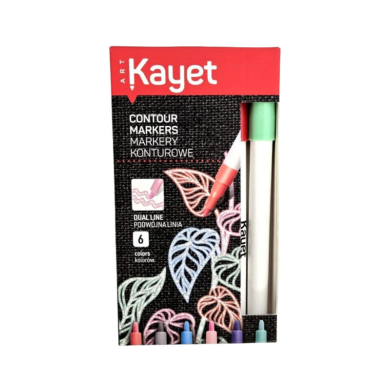 KAYET Markery konturowe z efektem podwójnej linii to kreatywny zestaw 6 wyjątkowych pisaków, które tworzą efektowną linię z metalicznym, srebrnym środkiem i kolorową obwódką. Idealne do dekoracji, rękodzieła i kreatywnych projektów.