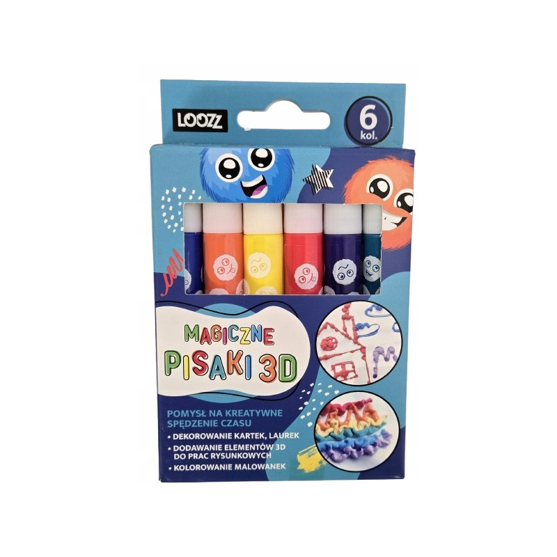 Odkryj zupełnie nowy wymiar rysowania! Magiczne pisaki 3D LOOZZ pozwalają tworzyć efektowne, wypukłe i przestrzenne linie, które dosłownie „wychodzą” z kartki. To idealna propozycja dla dzieci, młodzieży i dorosłych, którzy kochają kreatywną zabawę oraz rękodzieło.
