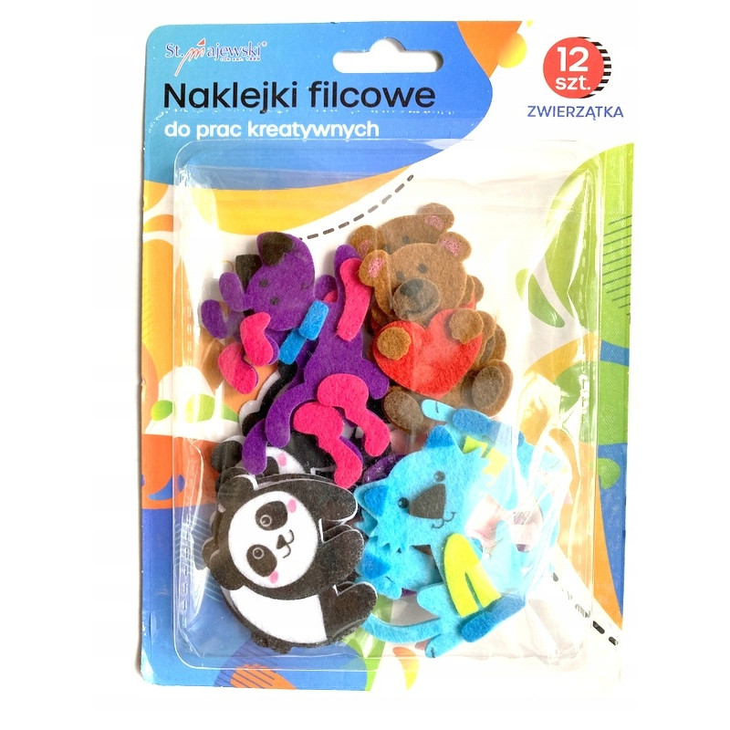 NAKLEJKI FILCOWE DO PRAC KREATYWNYCH ZWIERZĄTKA 12 SZTUK