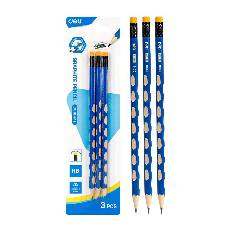 Ołówek z gumką HB heksagonalny nietoksyczny drzewo lipowe Deli 3SZT.