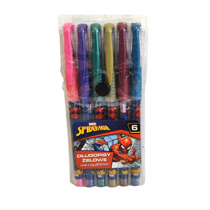 ST. MAJEWSKI Długopisy żelowe METALICZNE SPIDER-MAN – 6 kolorów