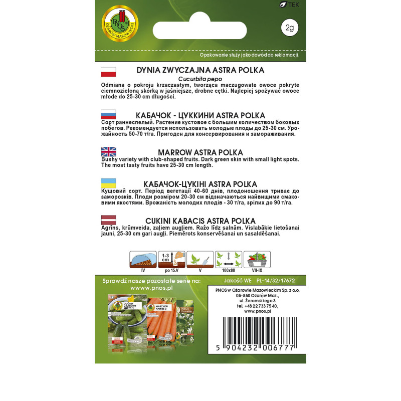 Dynia zwyczajna cukinia Astra Polka 2g. PNOS Ożarów Mazowiecki