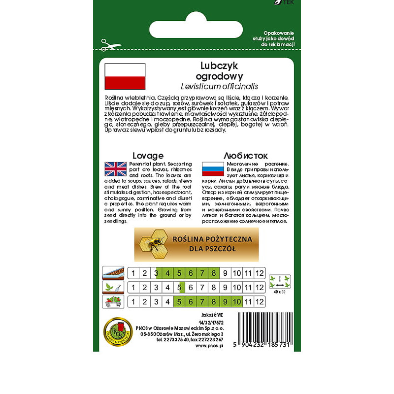 Lubczyk ogrodowy 0,5g. PNOS Ożarów Mazowiecki