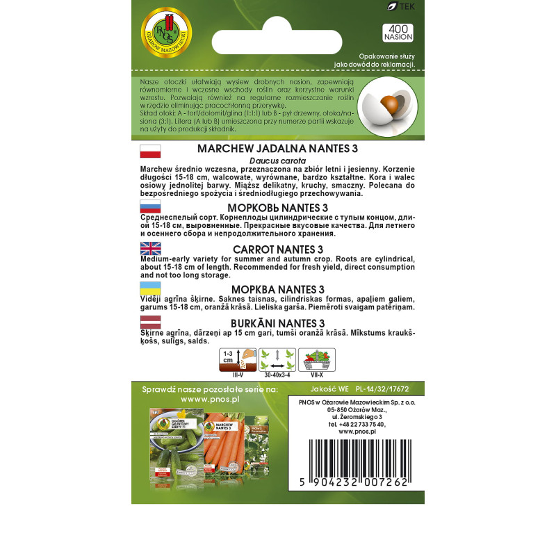 Marchew jadalna Nantes 3 400z OTOCZKOWANE PNOS Ożarów Mazowiecki