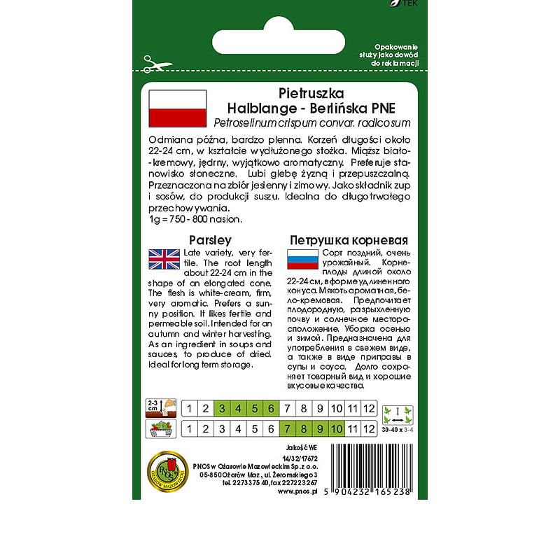 Pietruszka korzeniowa HALBLANGE - BERLIŃSKA PNE 5g PNOS Ożarów Mazowiecki
