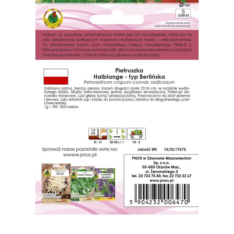 Pietruszka korzeniowa HALBLANGE Inkrustowana 5g PNOS Ożarów Mazowiecki
