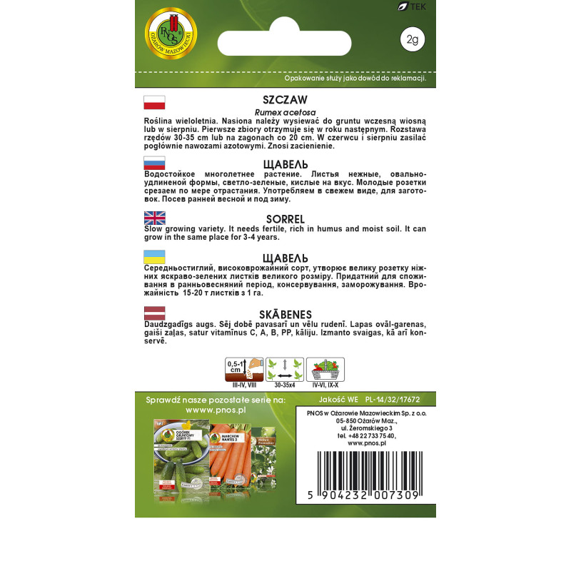 Wydajna odmiana o dużych, soczyście zielonych liściach. Roślina może rosnąć na tym samym stanowisku przez 3-4 lata, co czyni ją łatwą i długotrwałą w uprawie. Szczaw jest doskonałym źródłem żelaza oraz wielu ważnych witamin, takich jak witamina C i witaminy z grupy B.