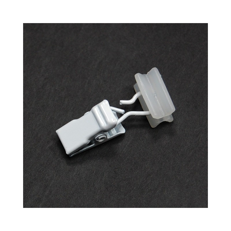 Ślizg długi z żabką do karniszy aluminiowych TS. Na 1 mb karnisza potrzebujemy 10 szt. ślizgów (co 10cm).