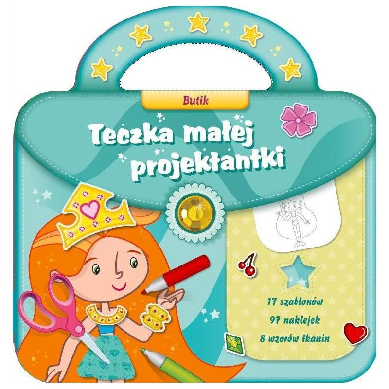 ARTYSTYCZNY ZESTAW dla małych projektantek mody. W poręcznej książeczce w kształcie teczuszki z rączką, którą można zabrać ze sobą w dowolne miejce, zamknięte jest wszystko, co potrzebne do przygotowywania wspaniałych kreacji: - szablony z częściami garderoby, które posłużą jako wzory (wykroje) do odrysowywania zarówno na kartach z modelkami, jak i papierach udających tkaniny; - arkusze kolorowych, ozdobnych papierów udających tkaniny - do samodzielnego przygotowania części garderoby modelek; - arkusze z kolorowymi naklejkami, na których małe projektantki znajdą buty oraz różne dodatki zarówno do strojów, jak i modelek. Te wyjątkowe ubieranki to atrakcyjna propozycja dla młodych stylistek, które lubią twórcze zabawy z naklejkami w kształcie części garderoby i różnorodnych akcesoriów. Korzystając z książeczek, dziewczynki rozwiną swoje zdolności manualne i nauczą się dobierać stroje odpowiednie do okazji. Kolorowe, zróżnicowane naklejki, które zachęcają do eksperymentowania ze stylami i puszczenia wodzów wyobraźni, sprawią, że zabawa będzie trwała bardzo długo!