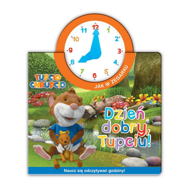 Książka z bohaterami Tupcio Chrupcio oraz zegarem do nauki odczytywania godziny dla najmłodszych.