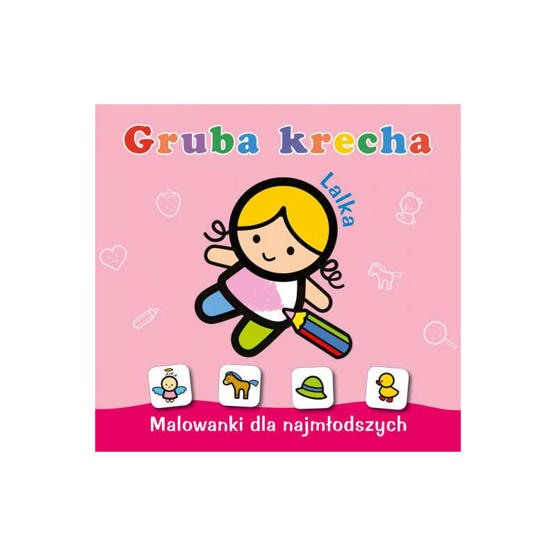 Grucha krecha to malowanki dla najmłodszych. Proste ilustracje z grubą linią umożliwią dzieciom naukę estetycznego kolorowania bez wychodzenia poza obrys. Do książeczki dołączono zestaw naklejek, które podpowiedzą maluchom, jakich kolorów użyć.