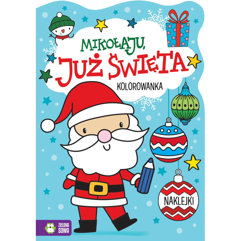 W każdej kolorowance znajdują się świąteczne naklejki.