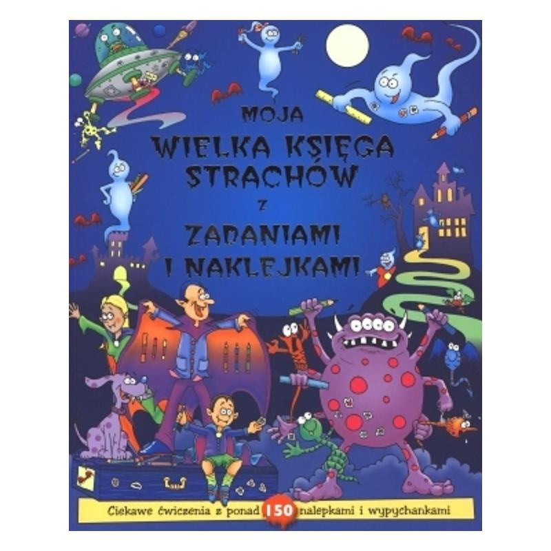 Moja wielka księga strachów z zadaniami i naklejkami. Ta fantastyczna książka zawiera mnóstwo naklejek oraz wszystko, czego potrzeba do stworzenia nietoperza, upiornej maski, statku kosmicznego i wielu innych ciekawych zabawek. W środku znajdują się zadania i gry rozwijające umiejętność liczenia, rysowania i spostrzegawczość.