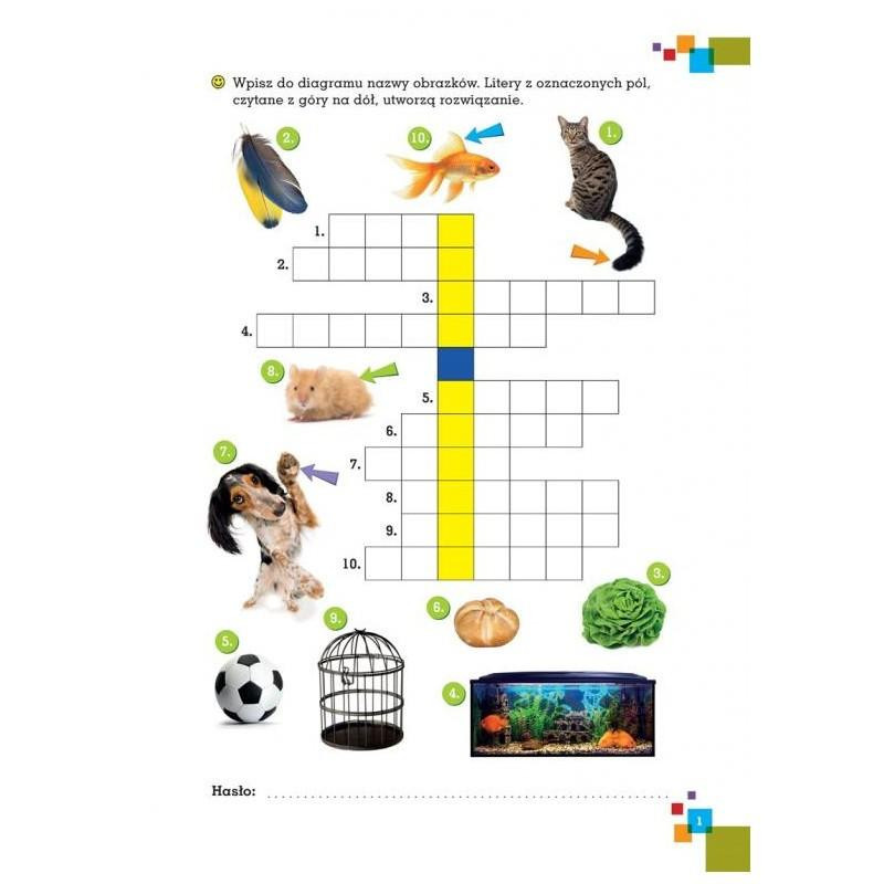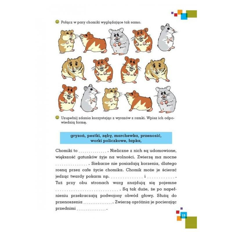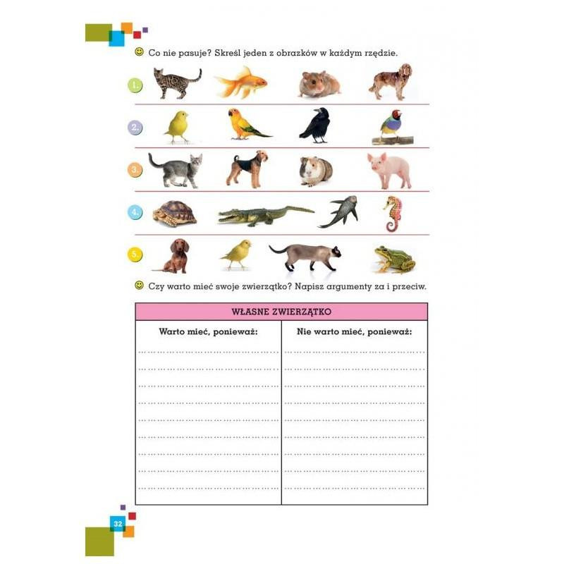 Młody czytelnik poznaje tajniki życia i upodobania zwierzątek hodowanych w domu. Ponadto uczy się rysować je, rozwiązuje krzyżówki i zadania związane tematycznie z opieką nad domowymi pupilami.