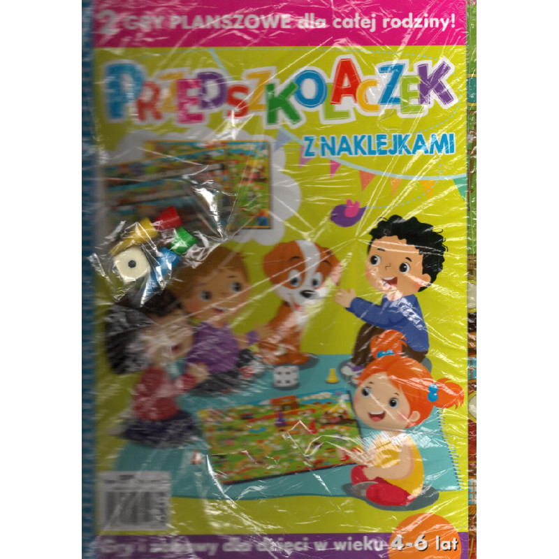 PRZEDSZKOLACZEK Z NAKLEJKAMI. GRY I ZABAWY DLA DZIECI W WIEKU 4-6 LAT + 2 GRY PLANSZOWE DLA CAŁEJ RODZINY