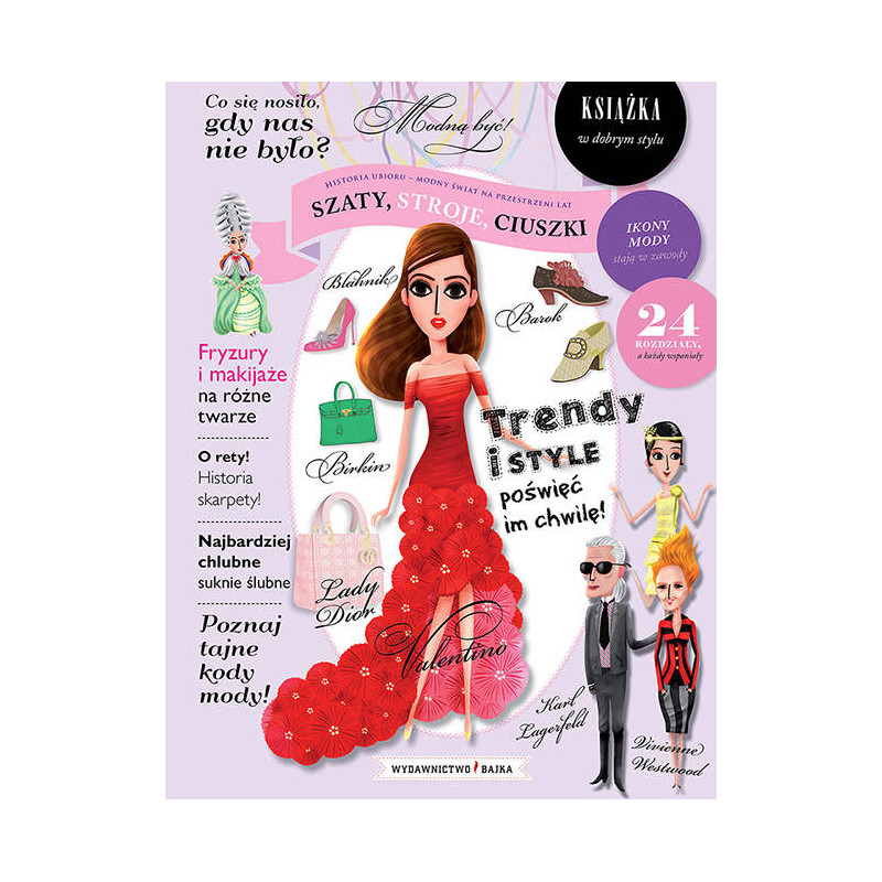 Oto przewodnik po dziejach mody, jakiego jeszcze nie było! Znajdziecie w nim mnóstwo ciekawostek i anegdot z dawnego i współczesnego świata elegancji, a także stylowe ilustracje, które ukazują ubiory z różnych epok i kultur, począwszy od futer, w które owijali się jaskiniowcy, poprzez greckie chitony i rzymskie togi, chińskie hanfu i japońskie kimona, po krynoliny, gorsety i surduty, aż do strojów hipsterów. Przedstawiamy ikony stylu wszech czasów oraz wielkich projektantów i niezwykłe kreacje, które przyniosły im sławę i majątek. Przekonamy was, że moda to fajna przygoda!