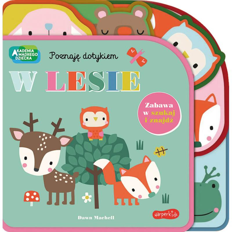 W Lesie to nowa książeczka z serii Poznaję Dotykiem, Akademii Mądrego Dziecka. Książeczka ma filcowe strony, dzięki czemu świetnie nadaje się do małych rączek – jest lekka i bardzo kolorowa. Dodatkowo posiada registry, na których znajdują się wizerunki leśnych zwierzątek, dzięki nim w łatwy sposób można przewracać strony. W Lesie to książeczka, która zachęca małego czytelnika do wspólnej, aktywnej zabawy. Na każdej stronie mamy krótkie zadanie z serii szukaj i znajdź. Maluszek musi znaleźć, pokazać paluszkiem lub policzyć wskazane zwierzątko na ilustracji. Na każdej stronie poznajemy innych leśnych mieszkańców takich jak lisek, króliczek czy niedźwiadek. Wspólne czytanie ćwiczy w małym dziecku koncentrację i skupienie, barwne ilustracje stymulują zmysł wzroku, a dodatkowo czytanie uczy i bawi jednocześnie. Drugą nowością w serii Poznaję dotykiem jest tytuł Na Farmie