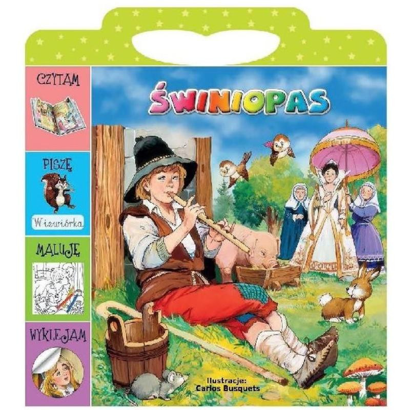 Bajka Świniopas to nie tylko bajka do odczytania przez dziecko lub rodzica. W książeczce znajdują się zadania rozwijające sprawność pisania oraz malowania. Maluch ma także możliwość zabawy z naklejkami dołączonymi do publikacji, co uatrakcyjni zabawę.