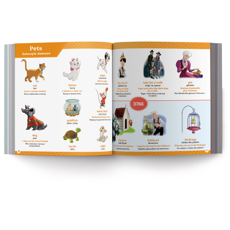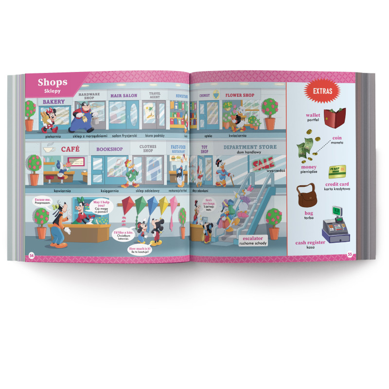 • każde ze słówek opatrzone jest kolorowymi grafikami i ilustracjami ze świata Disneya