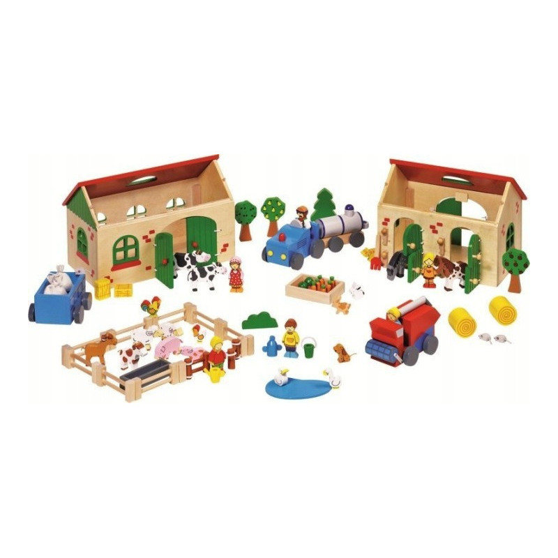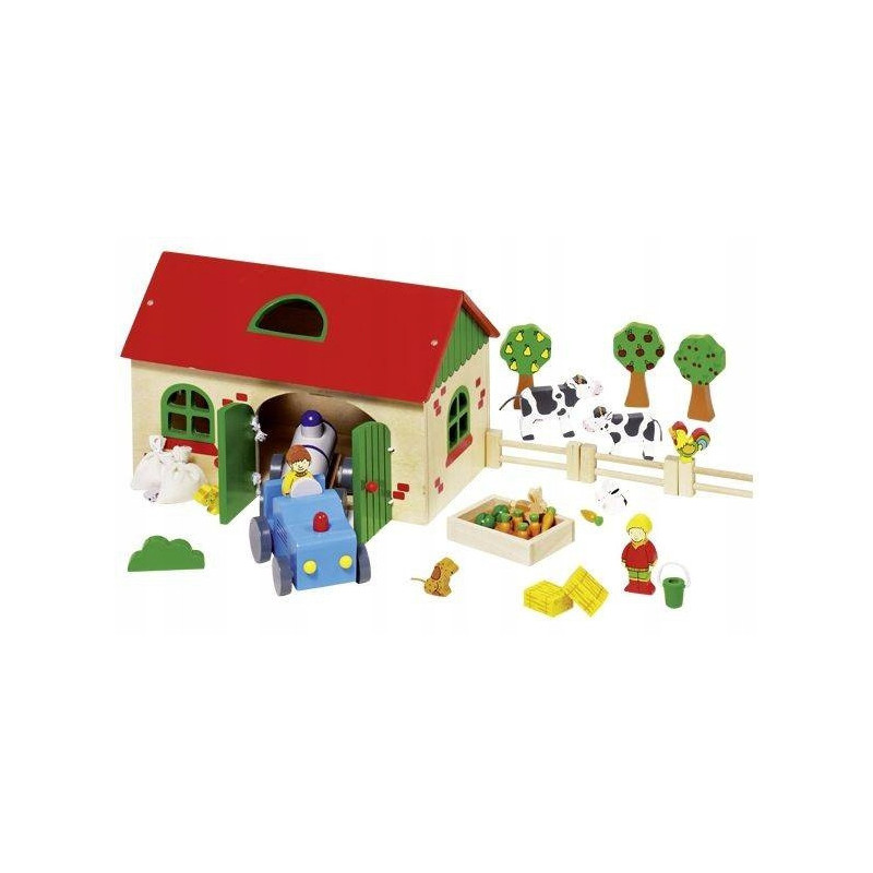Zestaw "Moja Farma" marki Goki to wspaniała zabawka, która składa się z 71 drewnianych elementów, umożliwiających stworzenie kompletnego gospodarstwa wiejskiego.