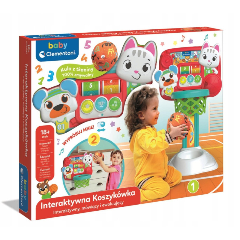 Interaktywna koszykówka Clementoni to edukacyjna zabawka dla najmłodszych dzieci, która łączy aktywność fizyczną z nauką. Maluch może wrzucać piłkę do kosza, a zabawka reaguje dźwiękiem i uczy pierwszych liczb oraz słów.