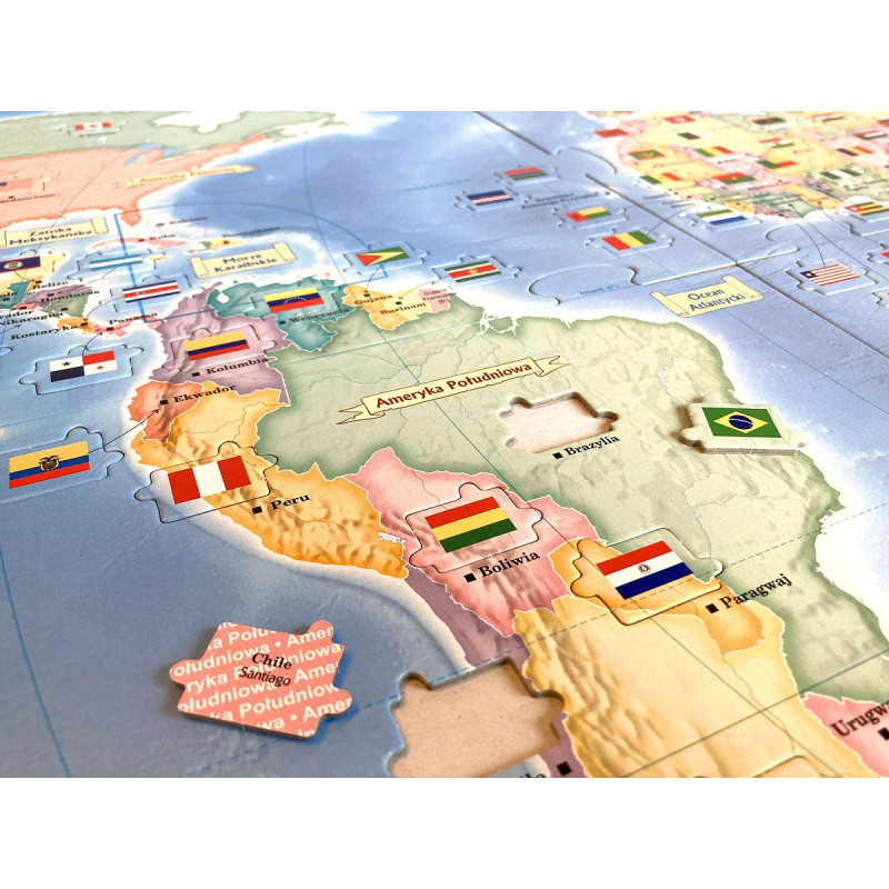 Waszym zadaniem jest dopasowanie każdej flagi do właściwego kraju na mapie i umieszczenie puzzla we właściwym miejscu.