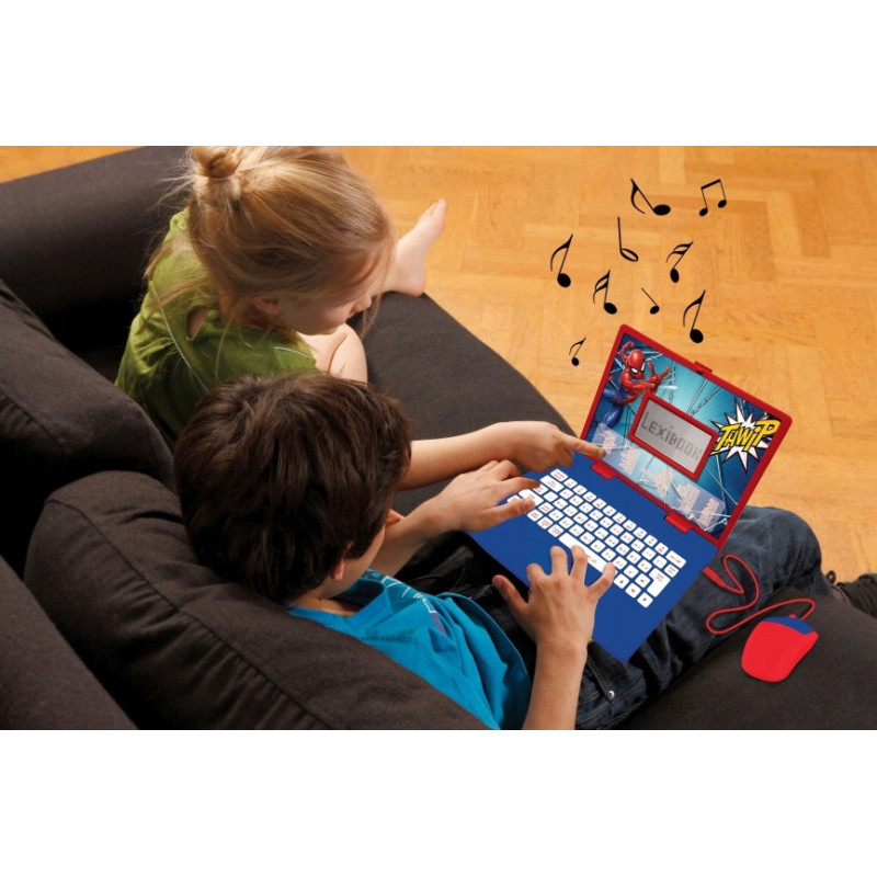 * Edukacyjny laptop ze 124 zadaniami (62 w każdym języku) zapewniający zabawną i interaktywną naukę ze Spider-Manem!