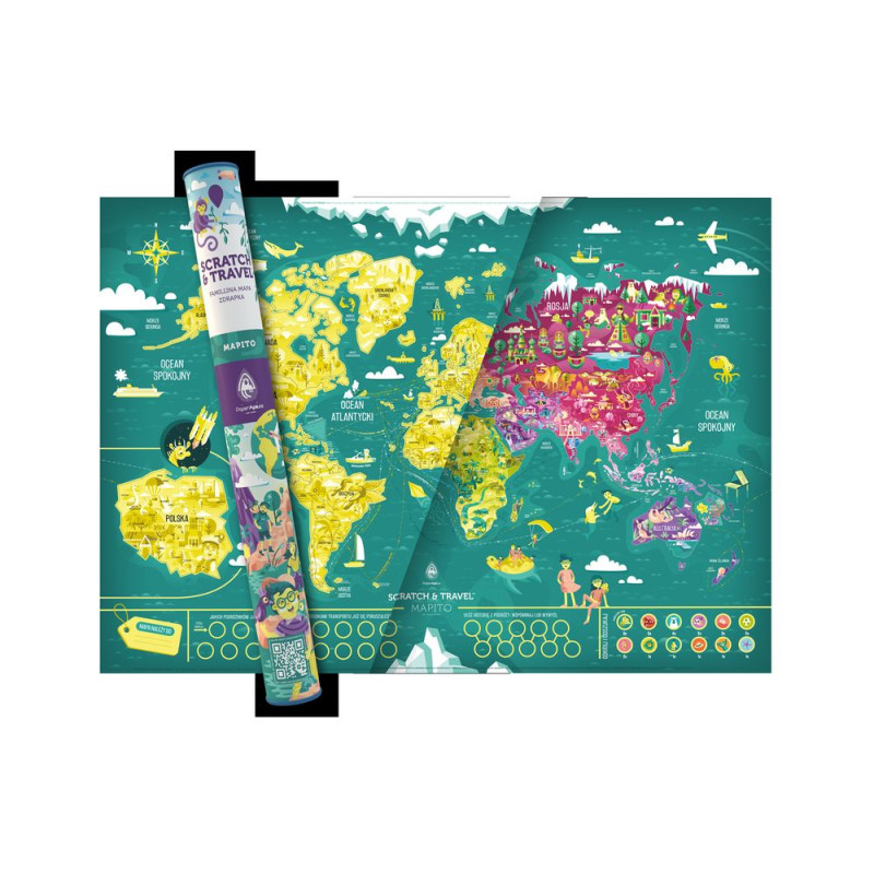 Oprócz tego na mapie nie mogło zabraknąć również szczegółowej mapy Polski. Wraz ze zdrapką MAPITO możecie więc zaplanować kolejną rodzinną wycieczkę, a następnie punkt swojej podróży odkryć, zdrapując odpowiedni fragment. Kto wie, może mapa zainspiruje Was do jeszcze dalszych, fascynujących wycieczek, nie tylko po naszym kraju? Co więcej, u dołu mapy znalazło się miejsce na dodatkowe gry, podczas których Waszym zadaniem będzie np. odszukanie określonych zwierząt czy postaci. Do mapy dołączona jest książeczka MAPITO.
