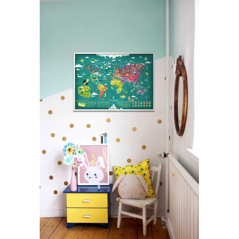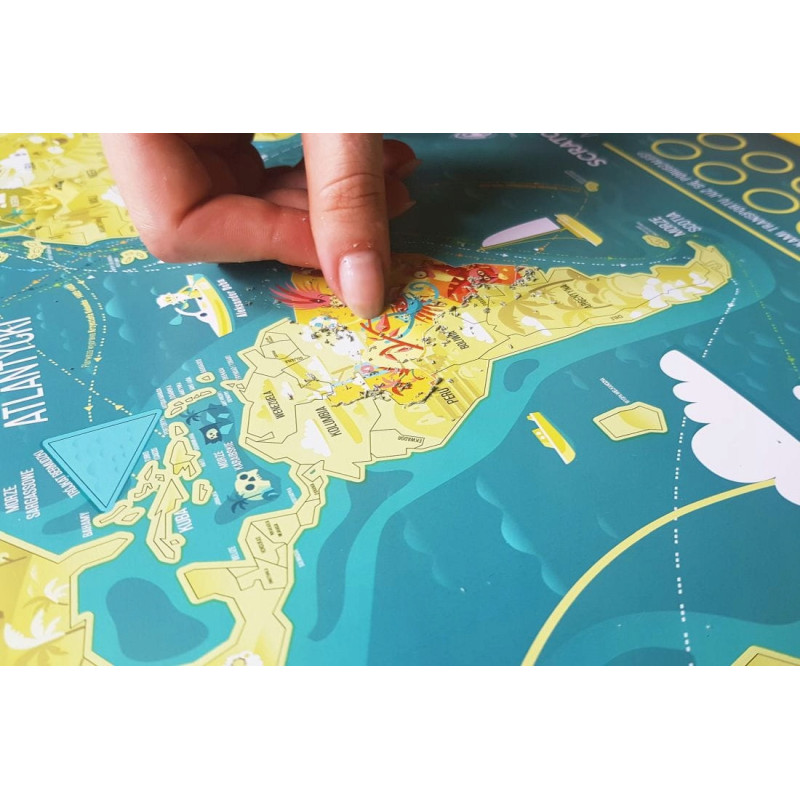 Mapa wykonana na grubym papierze nadaje się również do zawieszenia na ścianie w pokoju, gdzie będzie pełnić rolę ozdoby. Dzięki wygodnemu oraz estetycznemu opakowaniu świetnie sprawdzi się także w formie prezentu dla młodych podróżników. To produkt dostarczający wspaniałej rozrywki całej rodzinie!