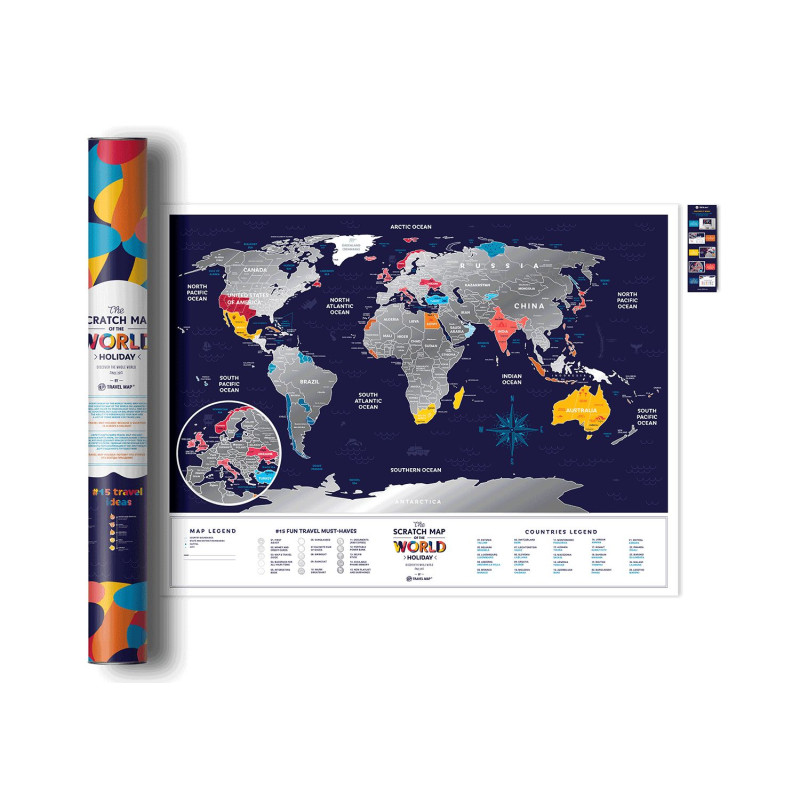 Travel Map™ Holiday World jest bardzo kolorową, osobistą mapą świata stworzoną specjalnie dla młodszych podróżników. Została pokryta specjalną srebrną powłoką do zdrapywania. Możesz z łatwością zaznaczyć państwa które odwiedziłeś i wakacyjne szaleństwa które zrealizowałeś. Po prostu użyj dołączonej kostki aby usunąć srebrną warstwę i odkryj miejsca w których już byłeś tworząc kolorowy zapis historii swoich podróży.