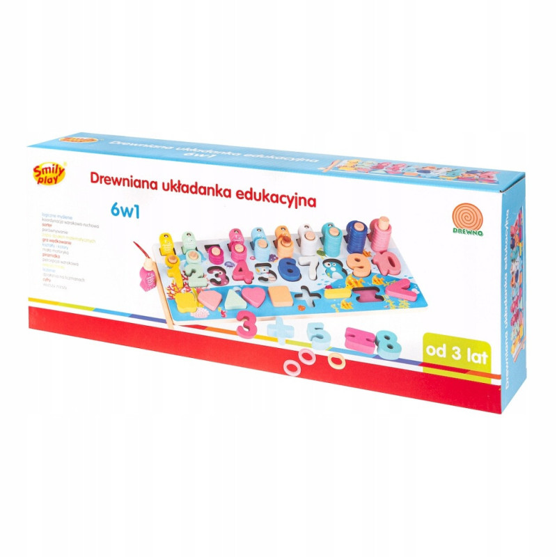 Drewniana zabawka edukacyjna z drewna dobrej jakości, posiada wymagane atesty.