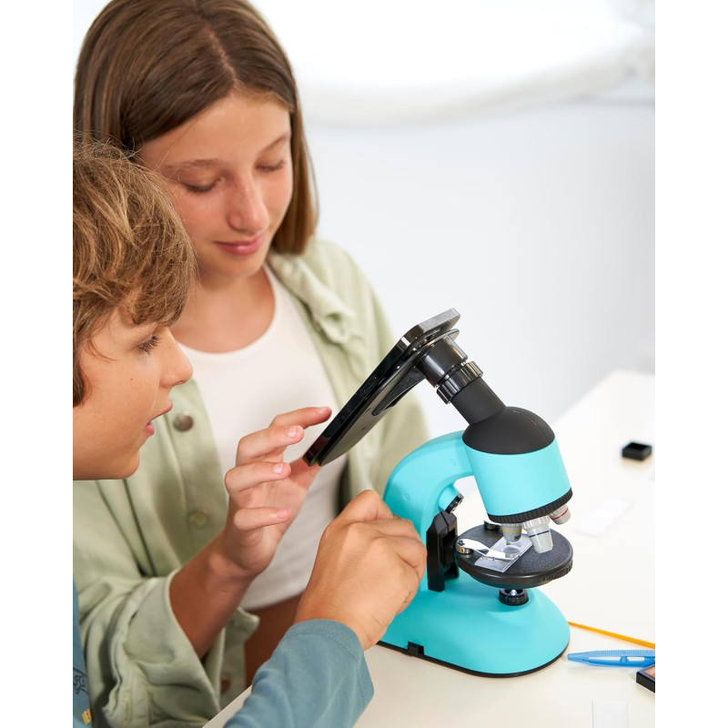 Mikroskop został zaprojektowany z myślą o dzieciach, co sprawia, że jest łatwy w obsłudze i przenoszeniu. Jego solidna konstrukcja oraz niewielka waga (585 g) czynią go idealnym towarzyszem dla małych odkrywców, którzy pragną badać świat wokół siebie.