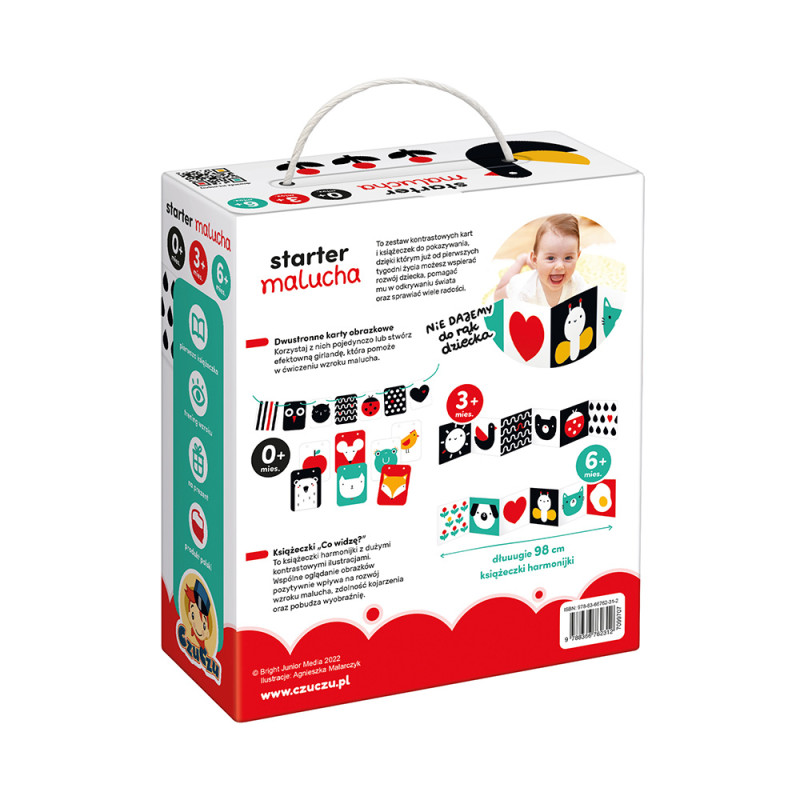 "Starter malucha. Co widzę?" z serii CzuCzu to odpowiedź na takie właśnie potrzeby. Może to być idealny prezent dla świeżo upieczonych rodziców. Sprawdzi się świetnie w pierwszym roku życia dziecka. Na zestaw ten składają się: