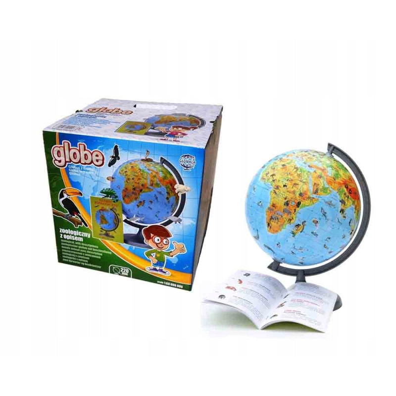 Globus 220 Zoologiczny to wyjątkowa pomoc edukacyjna, która w przystępny i atrakcyjny sposób przybliża dzieciom fascynujący świat zwierząt. Wyróżnia się dużą dokładnością narysowanych gatunków oraz żywą, kolorową mapą, przedstawiającą miejsca ich występowania na wszystkich kontynentach.