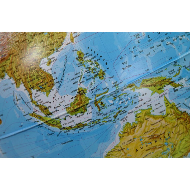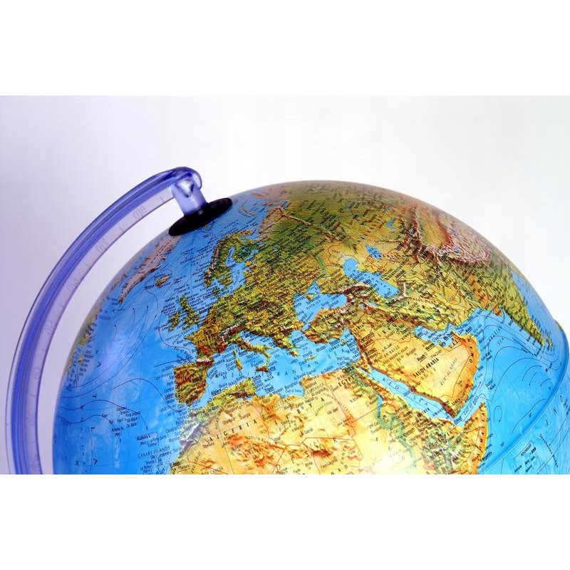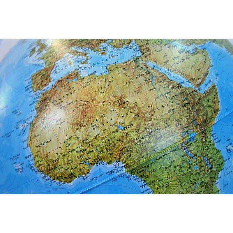 W trybie dziennym globus prezentuje mapę fizyczną świata. Po włączeniu podświetlenia ukazuje się dodatkowa warstwa – mapa polityczna, przedstawiająca granice państw, stolice i najważniejsze miasta. Taka forma 2w1 ułatwia przyswajanie wiedzy geograficznej i pomaga zrozumieć zarówno ukształtowanie powierzchni, jak i podział polityczny Ziemi.