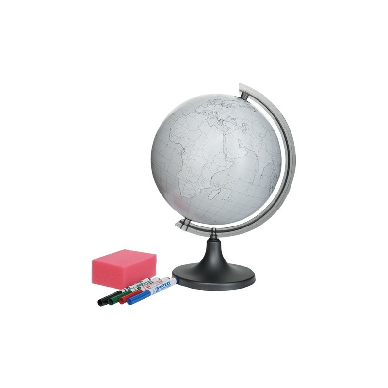 Powierzchnia globusa działa jak tablica suchościeralna, co pozwala pisać po niej ścieralnymi flamastrami – zaznaczać miasta, rzeki, krainy geograficzne, kierunki czy dowolne notatki. Napis można z łatwością zetrzeć gąbką i wykonać ćwiczenie od nowa.