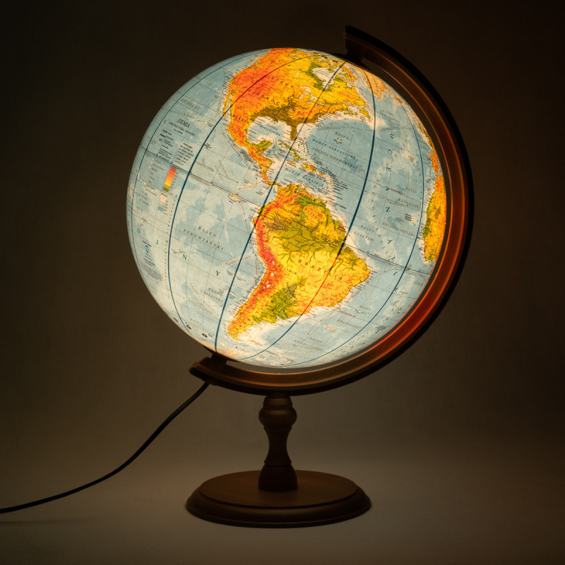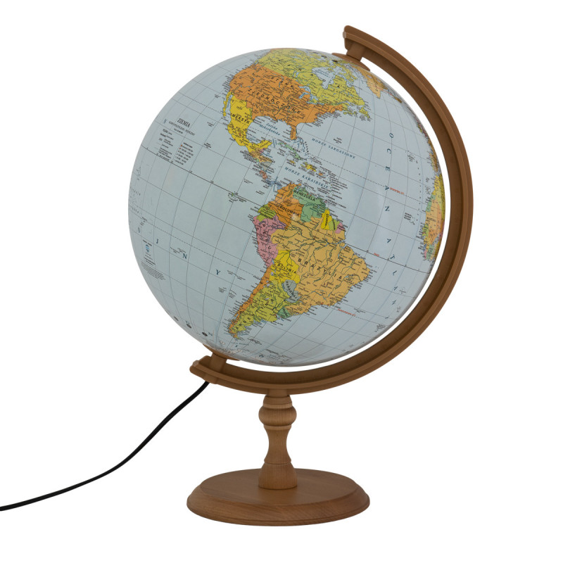 GLOBUS 320 POLITYCZNO FIZYCZNY PODŚWIETLANY DREWNIANA STOPKA Z APLIKACJĄ Outlet