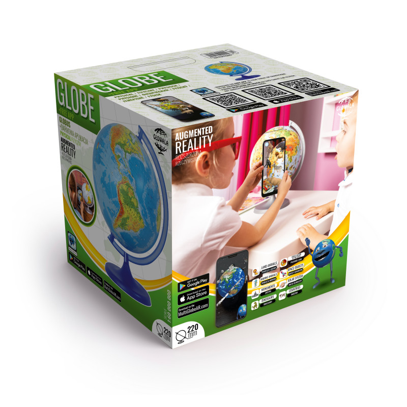 Nowoczesnym uzupełnieniem globusa jest możliwość korzystania z aplikacji MultiGlobe AR, którą można pobrać na telefon. Pozwala ona wyświetlać dodatkowe informacje, animacje oraz ciekawostki, dzięki czemu nauka staje się bardziej angażująca i interaktywna.