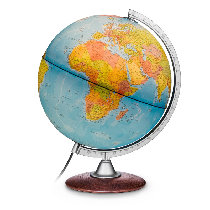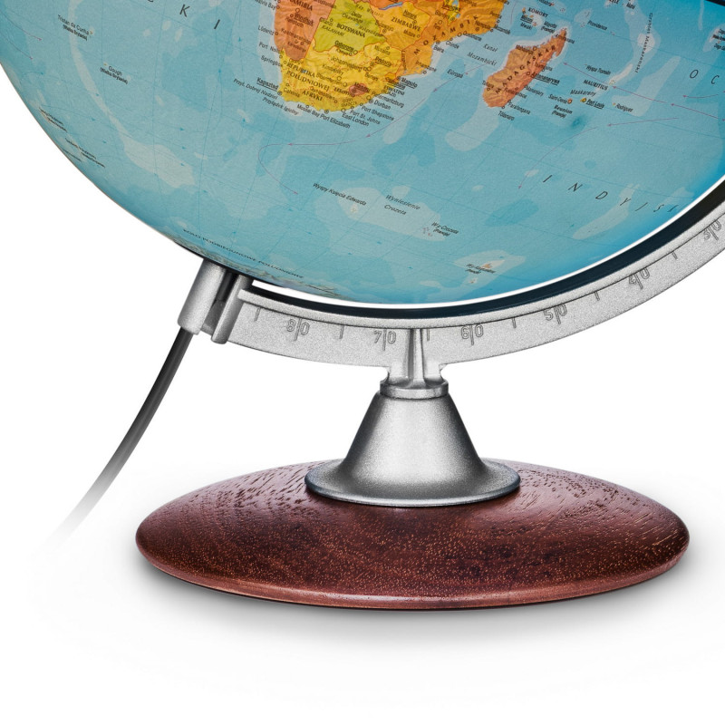 W trybie dziennym globus prezentuje mapę fizyczną, natomiast po podświetleniu ukazuje dodatkową warstwę informacji – mapę polityczną, przedstawiającą podział państw, granice, stolice i najważniejsze miasta. To rozwiązanie o ogromnych walorach edukacyjnych, które zachwyci zarówno dzieci, jak i dorosłych.