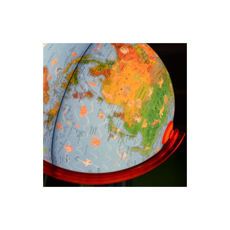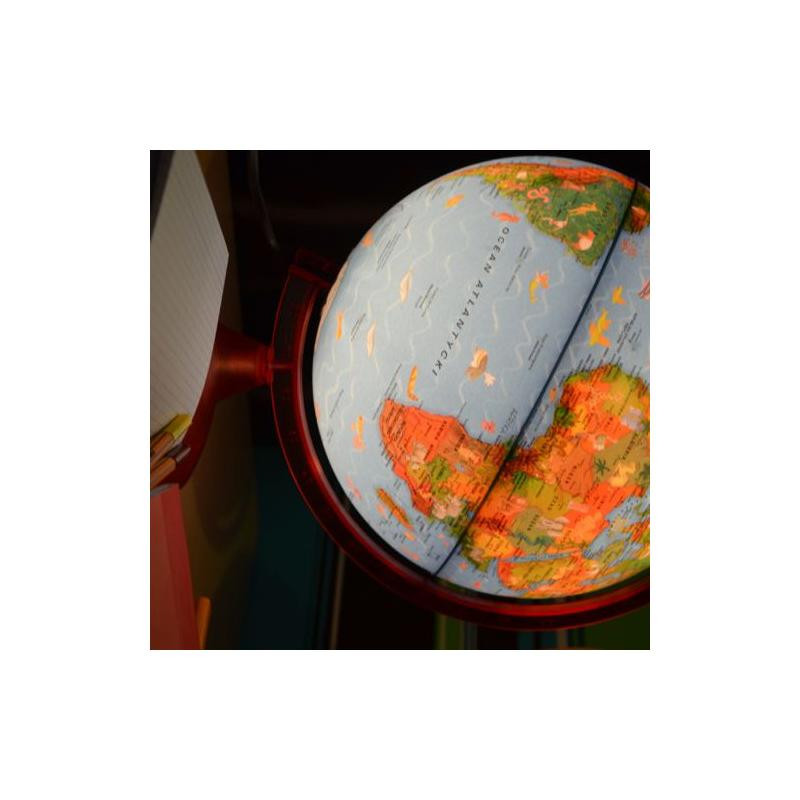Szczególną atrakcję o walorach poznawczych stanowi fakt, że po podświetleniu na mapie fizycznej pojawiają się dodatkowe informacje w postaci mapy politycznej. Może służyć jako oryginalna lampka nocna, wprowadzając w sny o podróżach. Na globusie dodatkowo zostały umieszczone zwierzęta zamieszkujące dany region.